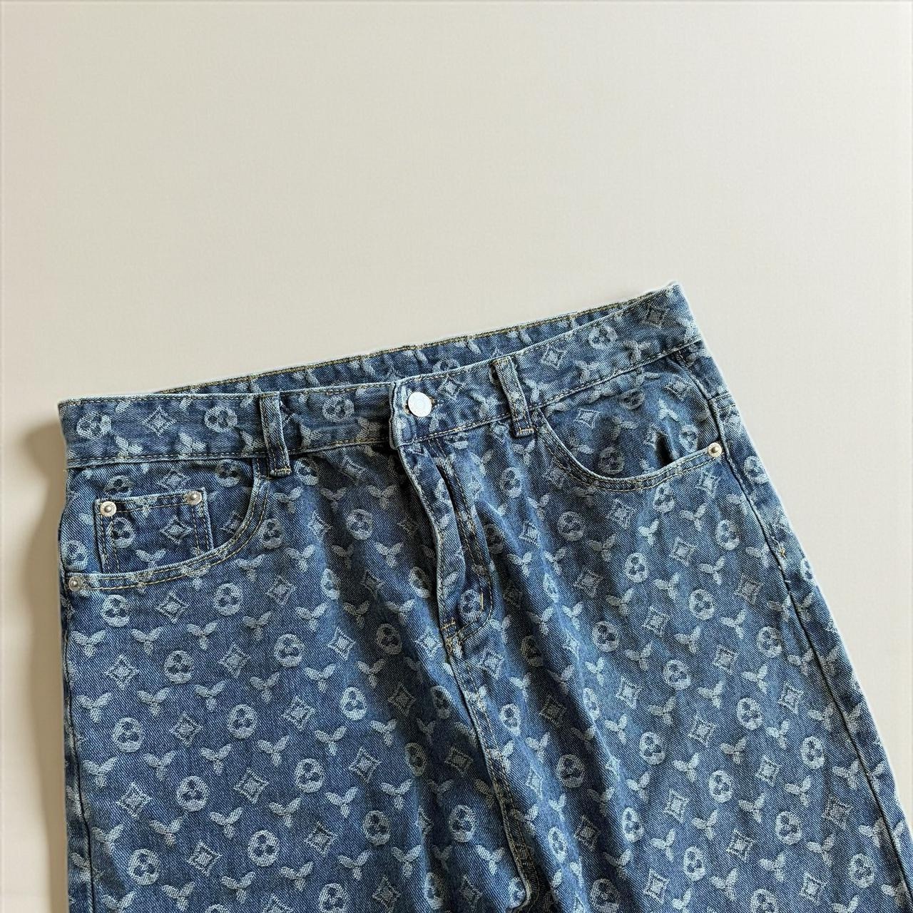 Men’s Patterned Streetwear Baggy Jeans – 34″